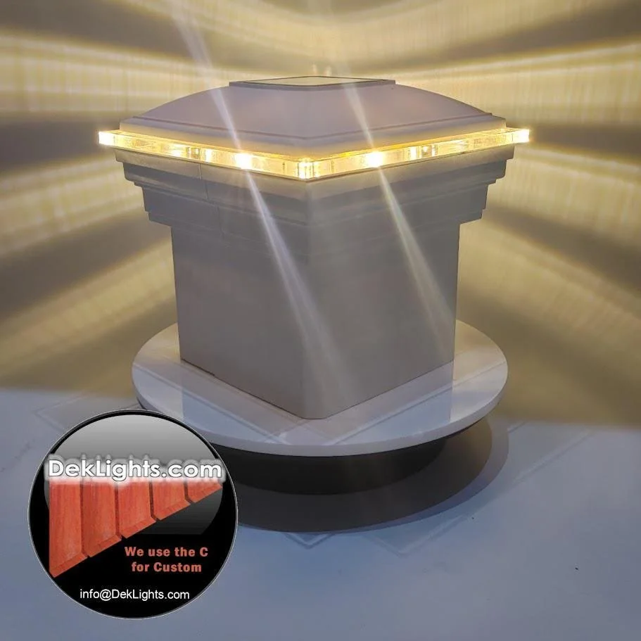 For Trex Posts. Our Glass Edge Style Custom Made 2nd Generation Solar Power Post Caps - User select bright or warm white - Wht - Made in USA