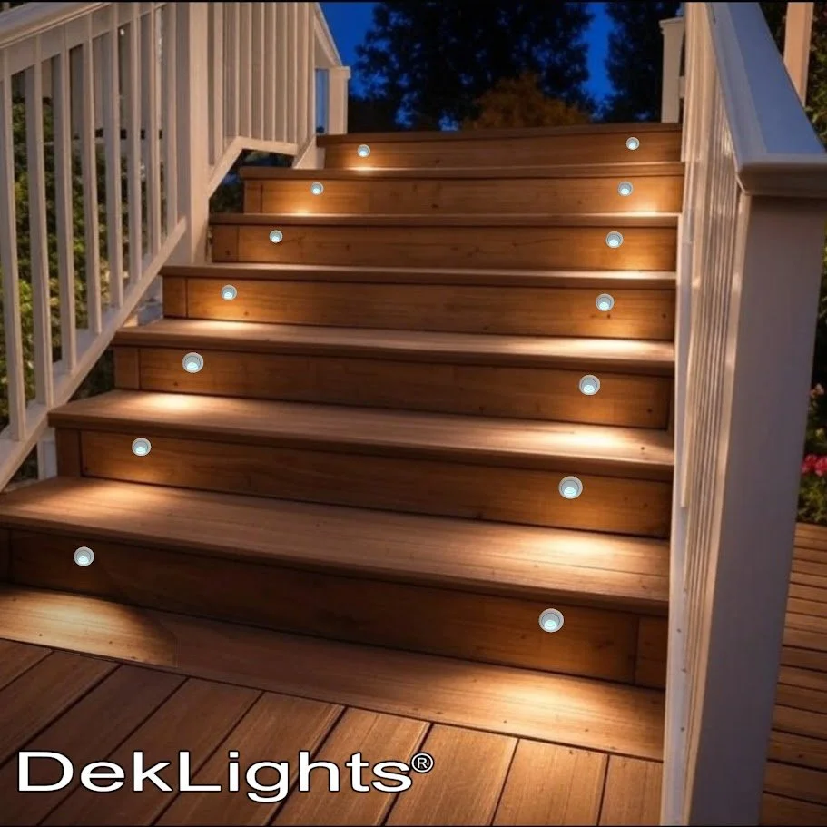 Safety First: Our lights not only enhance the aesthetic of your deck but also significantly improve safety by lighting up each step, reducing the risk of accidents at night. They comply with many local building codes requiring stair illumination.